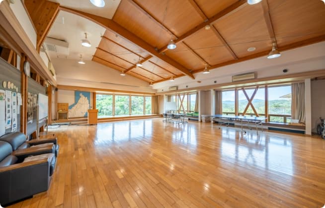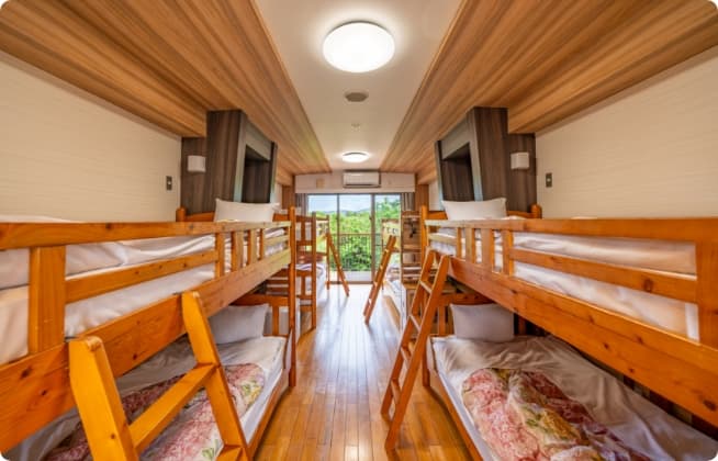 やんばる国立公園内にある「やんばる学びの森」は、自然体験や野外活動を堪能できる豊かな自然に囲まれた宿泊施設。宿は広々としたツインベットルームや大人数で宿泊可能なファミリータイプをご用意。(最大収容人数/82名)